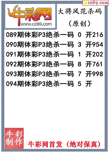 大将风范杀码094期体彩p3图谜(原创)